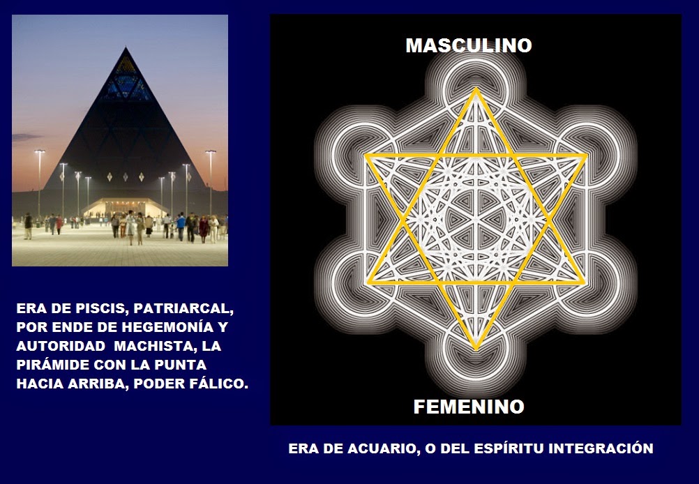 Nuestro diseño básico lo componen dos triángulos, llamados Merkabah o carro de fuego (dimensiones de conciencias), uno que apunta hacia arriba (masculino), chakras superiores, es el OM Pater, Verbo eterno, el otro hacia abajo (femenino), chakras inferiores, madre tierra, sexualidad que da la vida, es el útero, el arca de la nueva alianza.